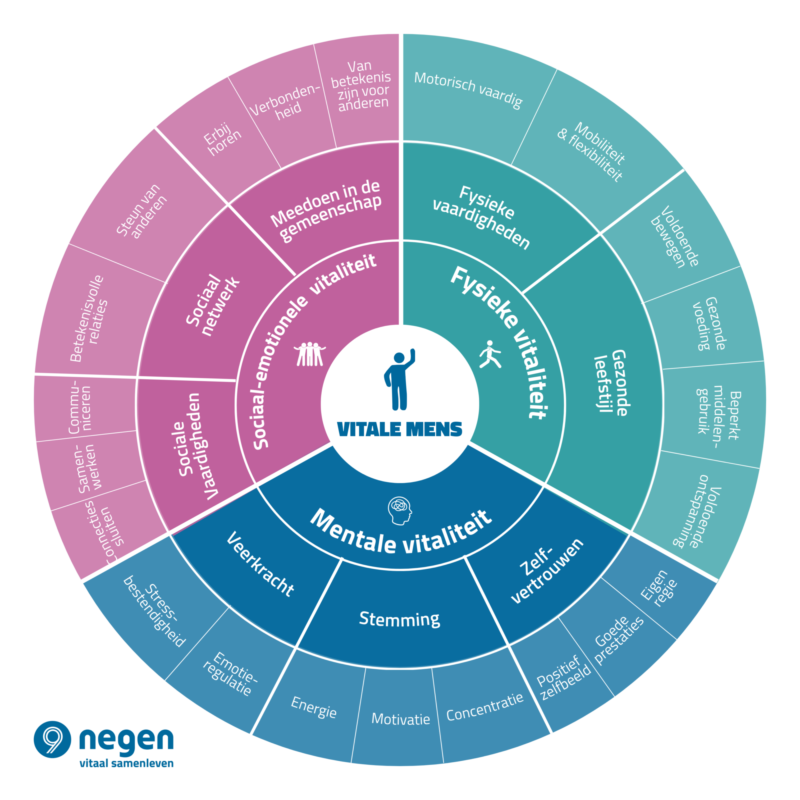 Vitaliteit ontstaat waar mensen en hun leefomgeving in balans zijn. Bij Negen versterken we fysieke, mentale en sociaal-emotionele vitaliteit in samenhang. Want mensen komen pas echt tot bloei wanneer zij zich energiek voelen, veerkracht ervaren én zich verbonden weten met anderen. Zingeving is daarbij de motor. Het geeft richting aan keuzes, motiveert om in beweging te komen en maakt dat mensen zich van betekenis voelen.